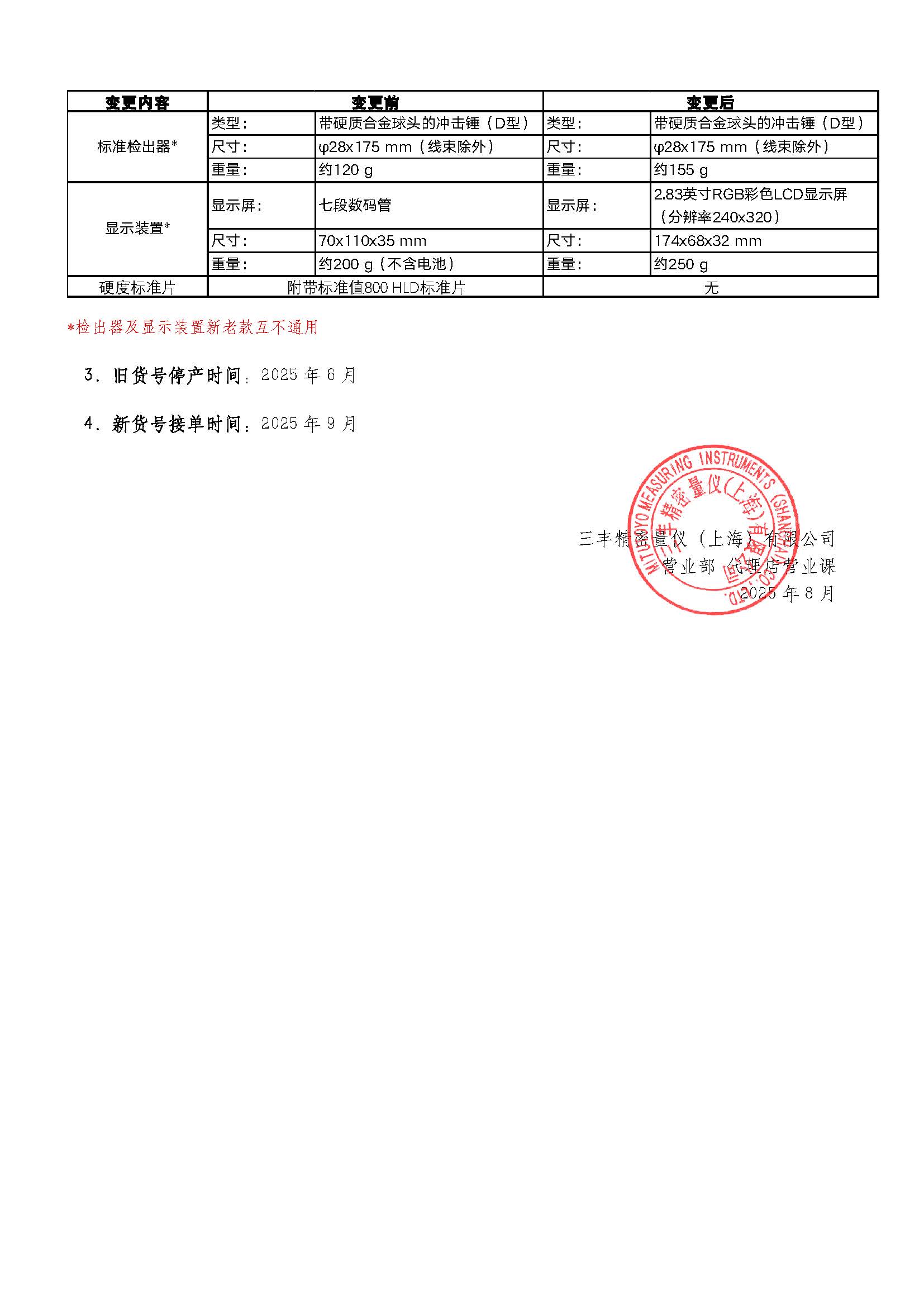 SHD-2517关于便携式硬度计HH-411系列产品更新的通知